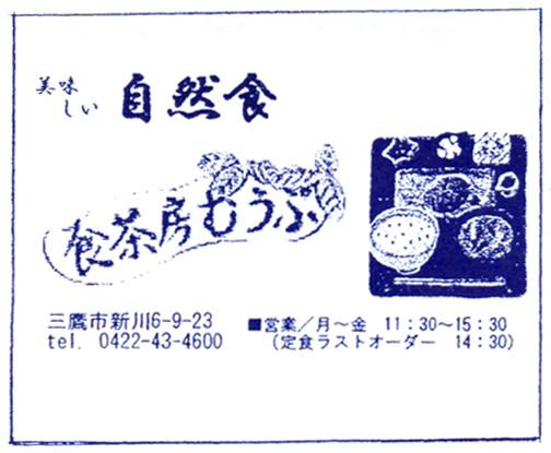 そんな中、「食茶房むうぷ」は自然食のレストランを運営しています。減農薬の野菜やお米、添加物の入っていない調味料などを使った日替わりの体に優しい自然定食を提供しています。お持ち帰り用のお弁当販売も行っています。食べることを大切に考えた食材と調味料を使い、心を込めて作っています。また、コクテール堂のコクのあるおいしいコーヒーや米粉で作ったシフォンケーキなどもあります。最近ではパンから焼いて作っているラスク(はちみつ味、抹茶味、コーヒー味等々あります)もとっても評判です。